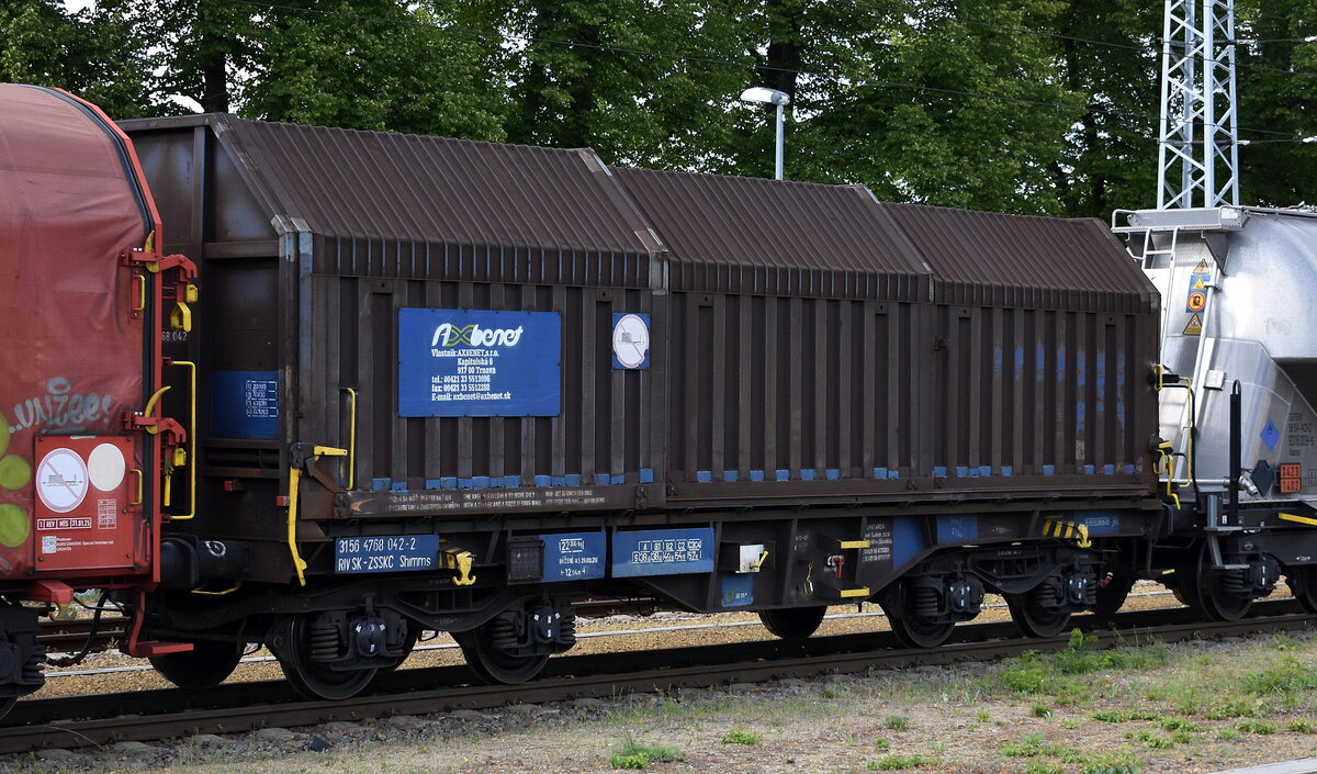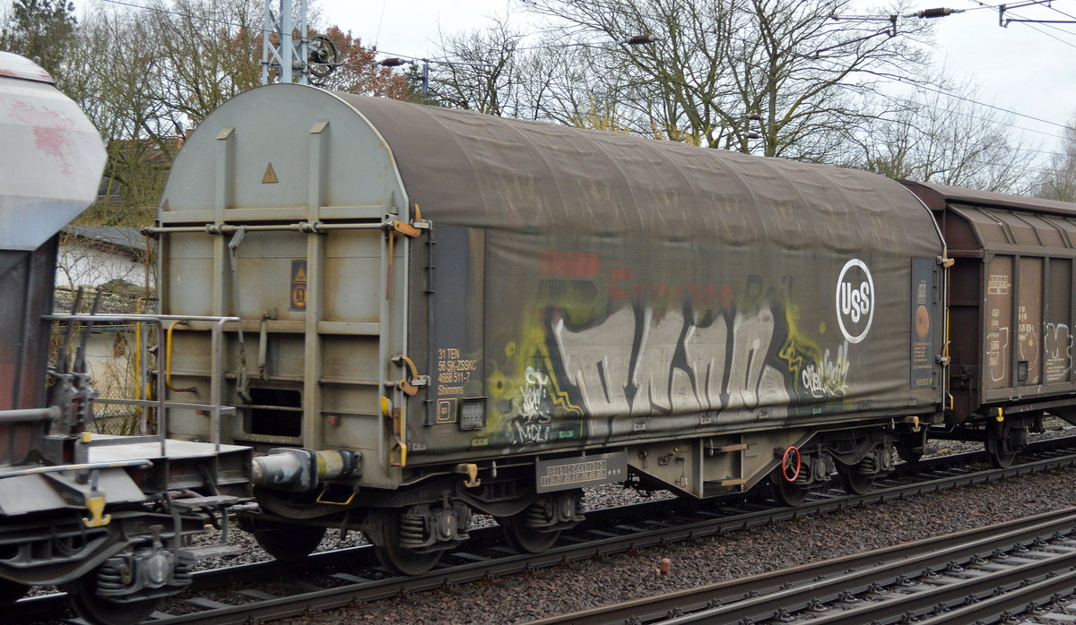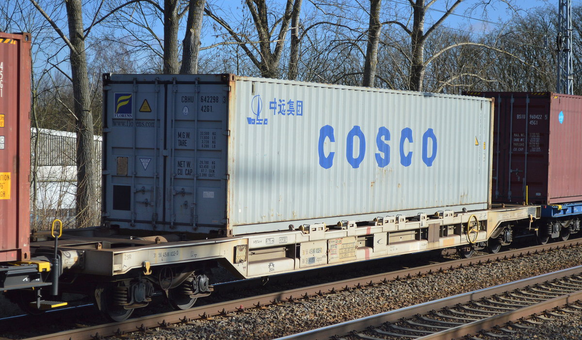 Älterer slowakischer Containertragwagen mit der Nr. 31 RIV 56 SK-ZSSKC 4511 017-4 Sdgnss 9-559.0 am 17.02.16 Berlin-Hohenschönhausen.