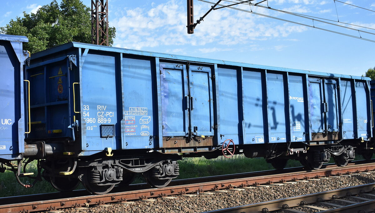 Tschechischer offener Drehgestell-Hochbordwagen der ČD Cargo mit der Nr. 31 TEN 54 CZ-CDC 5380 412-4 Eanos 9-152.0 in einem Ganzzug am 02.04.25 Höhe Bahnhof Saarmund.