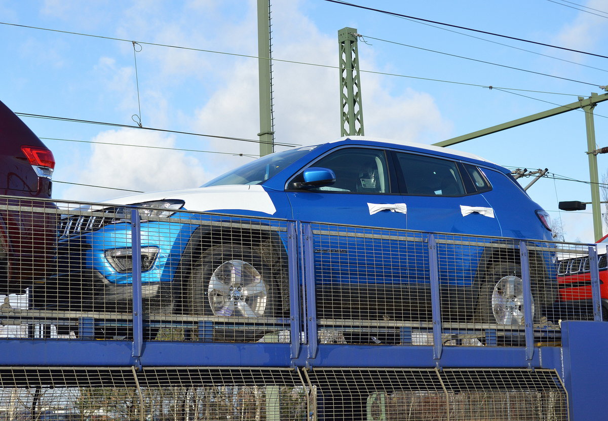 Ein PKW-Transportzug mit fabrikneuen Toyota und Lexus Modellen am 27.07.16 Bf. Flughafen Berlin-Schönefeld.