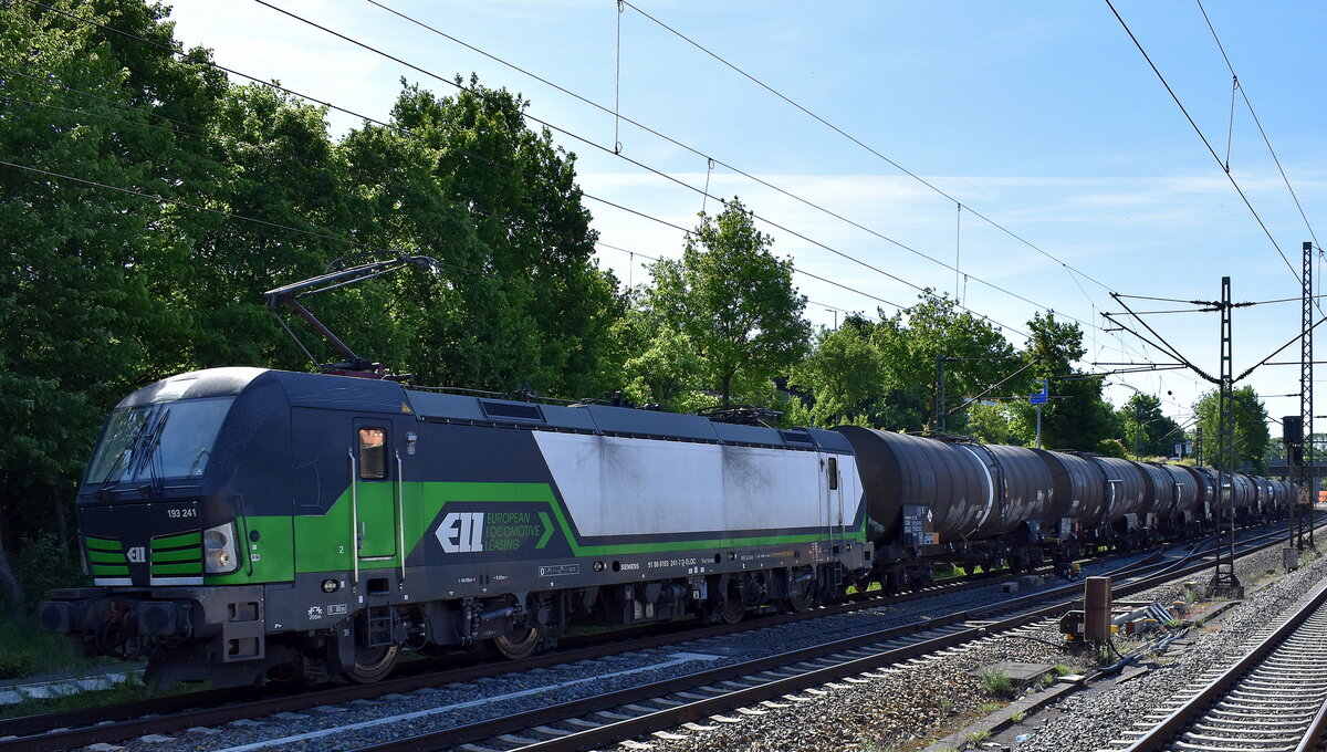 ecco-rail GmbH, Wien [A] mit der geleasten ELP Eurodual Lok "2159 218-7" [NVR-Nummer: 90 80 2159 218-7 D-ELP] und einem Ganzzug Drehgestell-Rungenwagen (leer) am 09.08.25 Höhe Bahnhof Magdeburg Hbf.