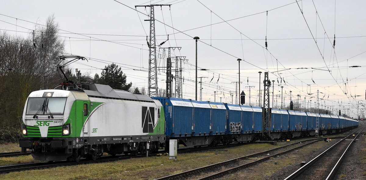 SETG - Salzburger Eisenbahn Transport Logistik GmbH, Salzburg [A] mit der geleasten ELL Vectron Dual Lok "248 065" [NVR-Nummer: 90 80 2248 065-5 D-ELOC] beim Umsetzen zur Abstellung am Bahnhof Stendal Hbf. am 05.03.26