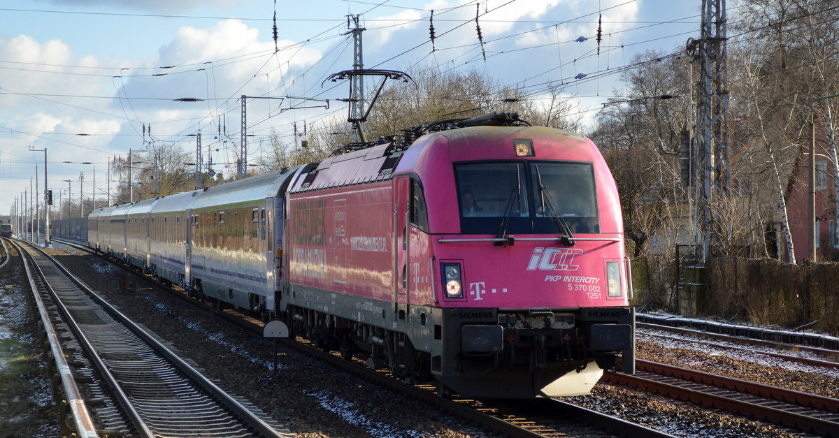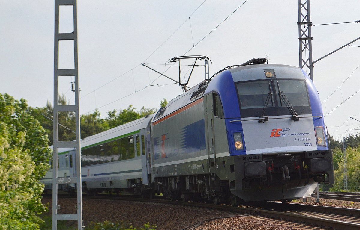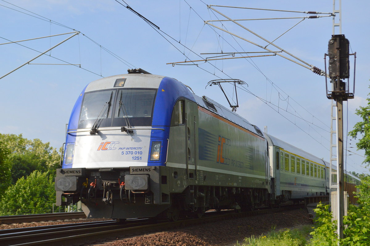 EC nach Warschau mit dem PKP Intercity Husarz 5 370 005 am 18.07.17 Berlin-Hirschgarten.