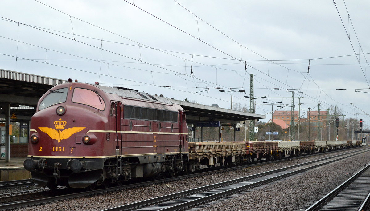 Die Nohab 1147 von STRABAG (92 80 1227 007-2 D-EIVEL, Nohab Bj.1964 gezogen von 203 166 am 28.02.13 Berlin-Wedding.