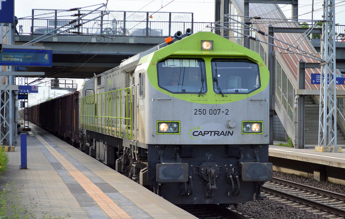 hvle V330.3 (250 011-4) mit langem Ganzzug Schüttgutwagen abfahrbereit Gbf. Berlin-Neukölln, 19.06.15