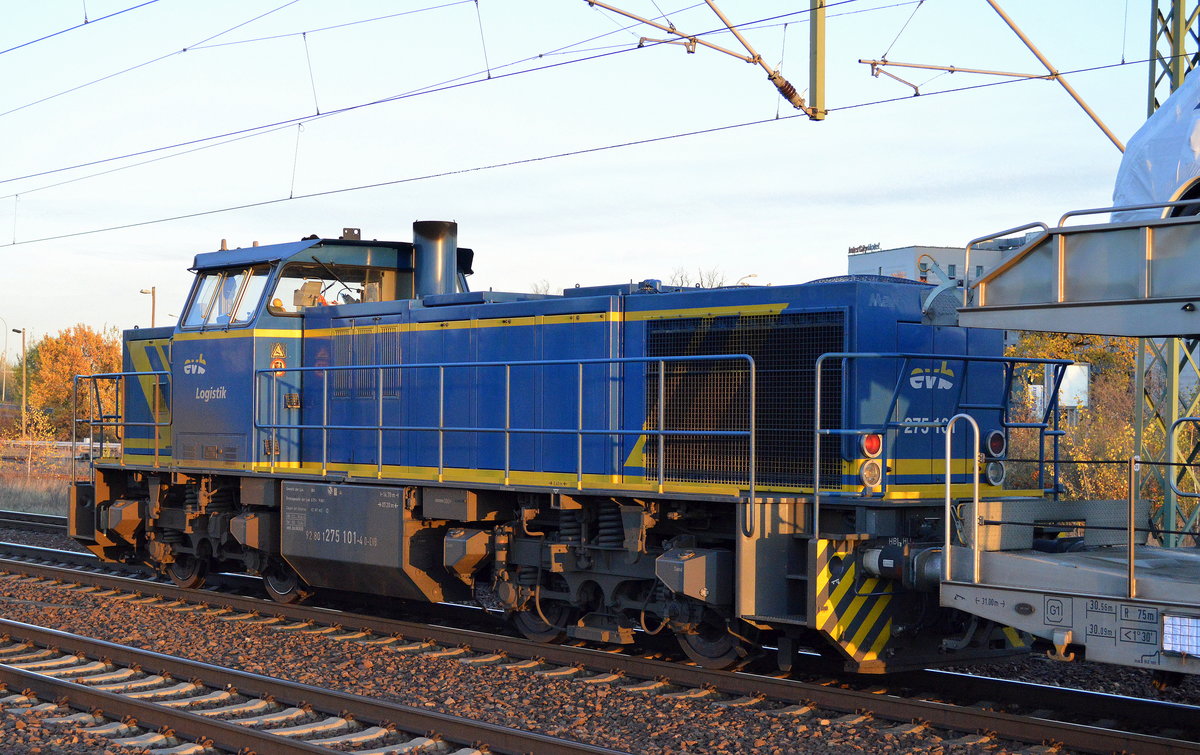 Tageshighlight und große Überraschung hier im Nordosten, die Mak G 1206 der EVB, die 275 101 (92 80 1275 101-4 D-EVB) den Hamburgern im fast täglichen Einsatz bekannt, hier nun also plötzlich in unseren Breiten bei untergehender Sonne mit einem beeindruckend langen PKW-Transportzug (fabrikneue AUDI u. VW Modelle) am 06.11.17 BF. Flughafen Berlin-Schönefeld. Ich nehme mal an auch Richtung Osten, vielleicht Frankfurt/Oder weiter dann nach Polen? Erstaunlich das die kleine Mak G 1206 diese doch nicht mehr ganz kurze Tour alleine vollzog? Lothar Stöckmann