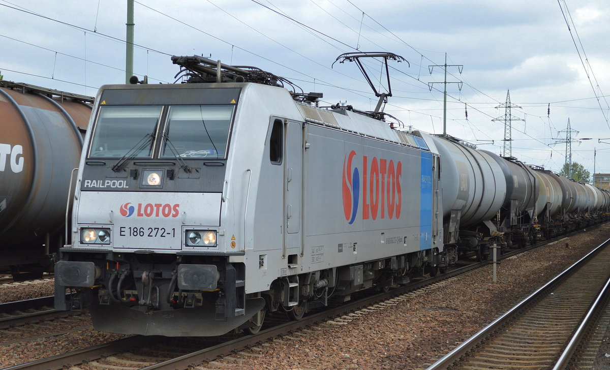 Die polnische Lotos Kolej Sp. z o.o. mit der Rpool "E 186 271-3" [NVR-Number: 91 80 6186 271-3 D-Rpool] und Kesselwagenzug am 17.05.18 Berlin-Wuhlheide.