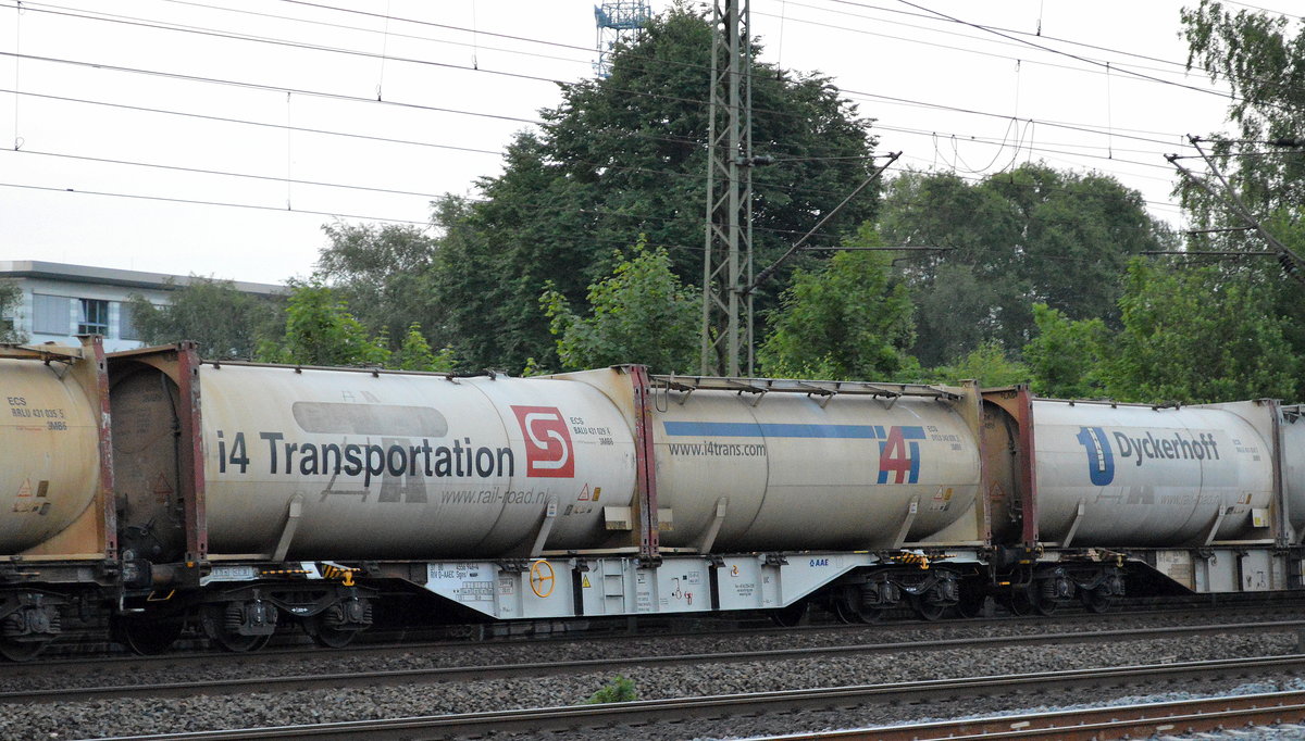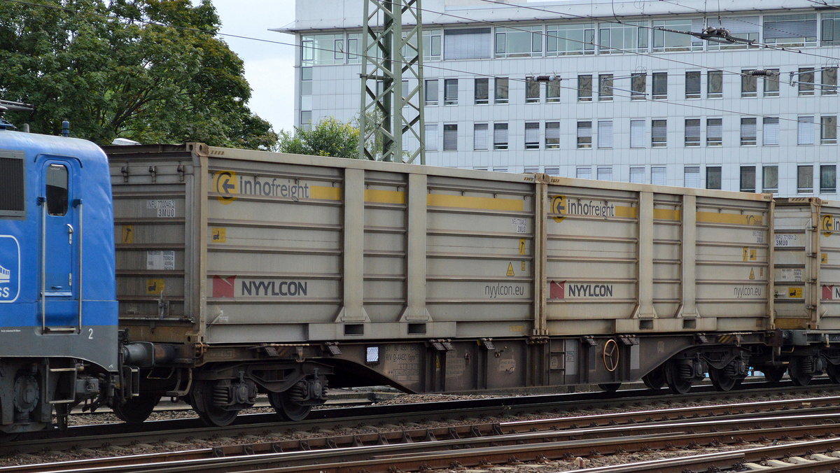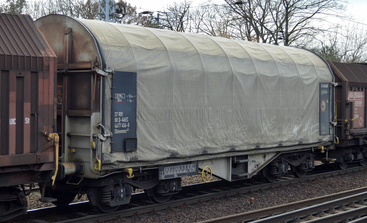 Drehgestell-Flachwagen mit Schiebeplane vom Einsteller AAE mit der Nr. 37 RIV 80 D-AAEC 4677 440-2 Shimmns63 am 28.07.16 Bf. Flughafen Berlin-Schönefeld.