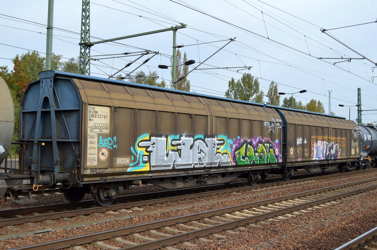 Großraum-Schiebewandwagen vom Einsteller TRANSWAGGON mit schweizer Registrierung mit der Nr. 33 RIV 85 CH-TWA 2740 572-8 Habbiins 17 am 13.09.16 Bf. Flughafen Berlin-Schönefeld.