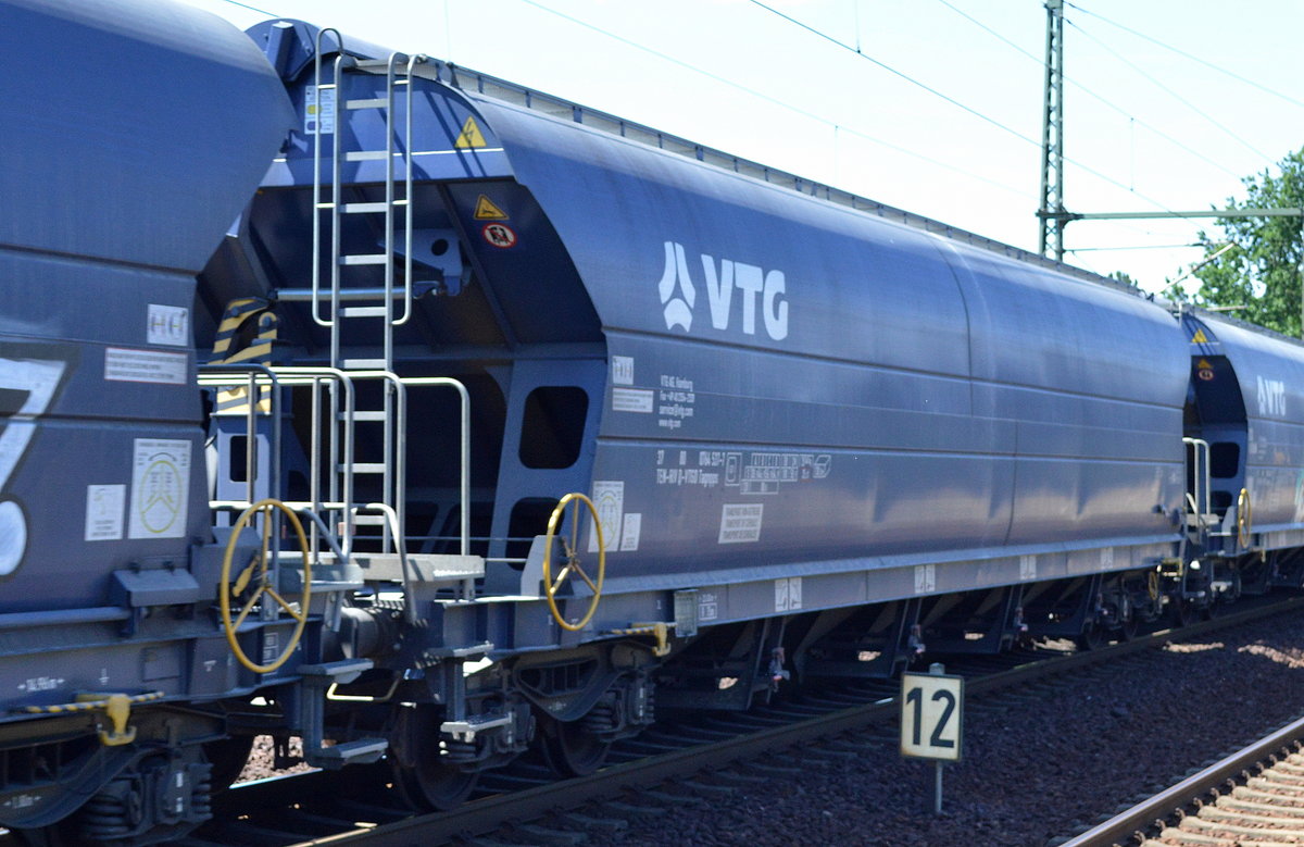 Drehgestell-Flachwagen mit Schiebeplane für den Coiltransport vom Einsteller VTG in Hamburg mit der Nr. 37 RIV 80 D-VTGD 4777 830-3 Shimmns 2 Bf.: Maschen-Rbf. am 26.06.14 Bhf. Flughafen Berlin-Schönefeld.