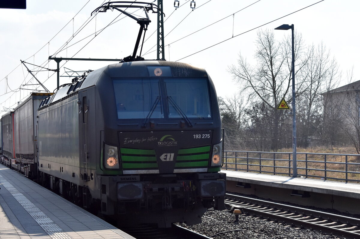 TX Logistik AG, Troisdorf [D] mit der geleasten Railpool Vectron "6193 132" [NVR-Nummer: 91 80 6193 132-8 D-Rpool] und einem KLV-Zug aus dem Seehafen Rostock am 16.04.25 Höhe Bahnhof Berlin Hohenschönhausen.