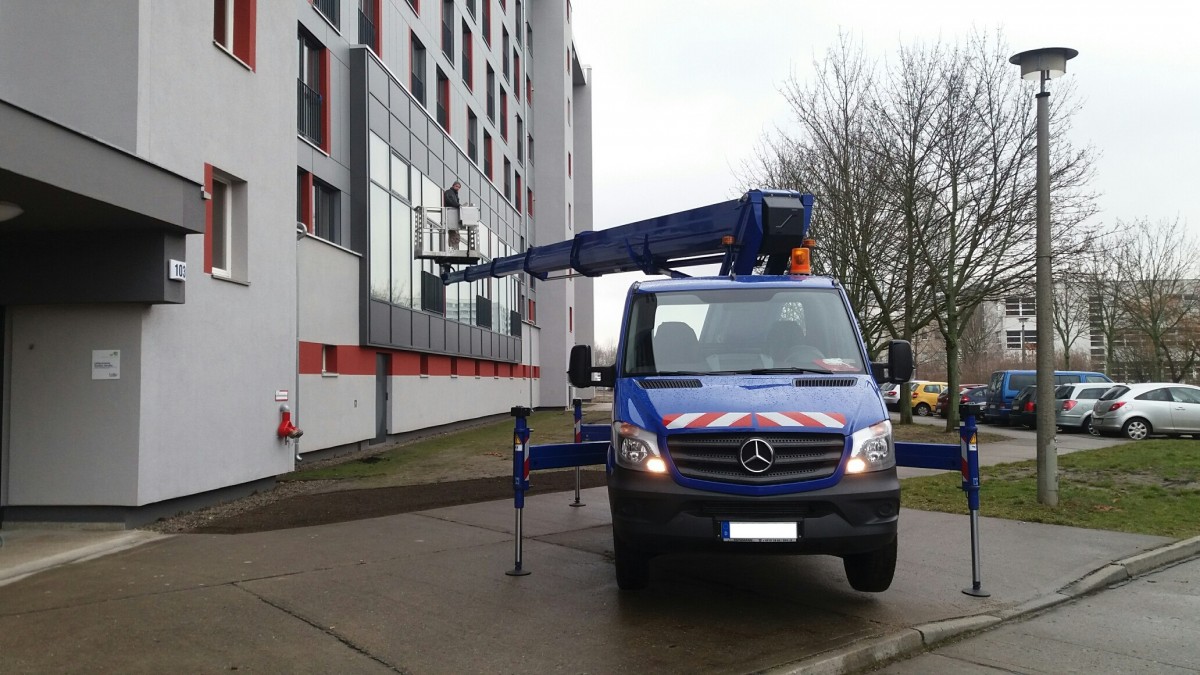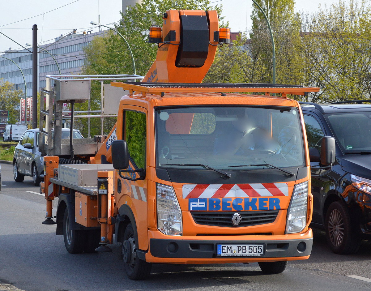 Ein NISSAN Cabstar 35.13 mit Arbeitsbühnenaufsatz der Leasingfirma mateco, 20.02.09 Berliner StadtautobahnHöhe Knobelsdorffstr.