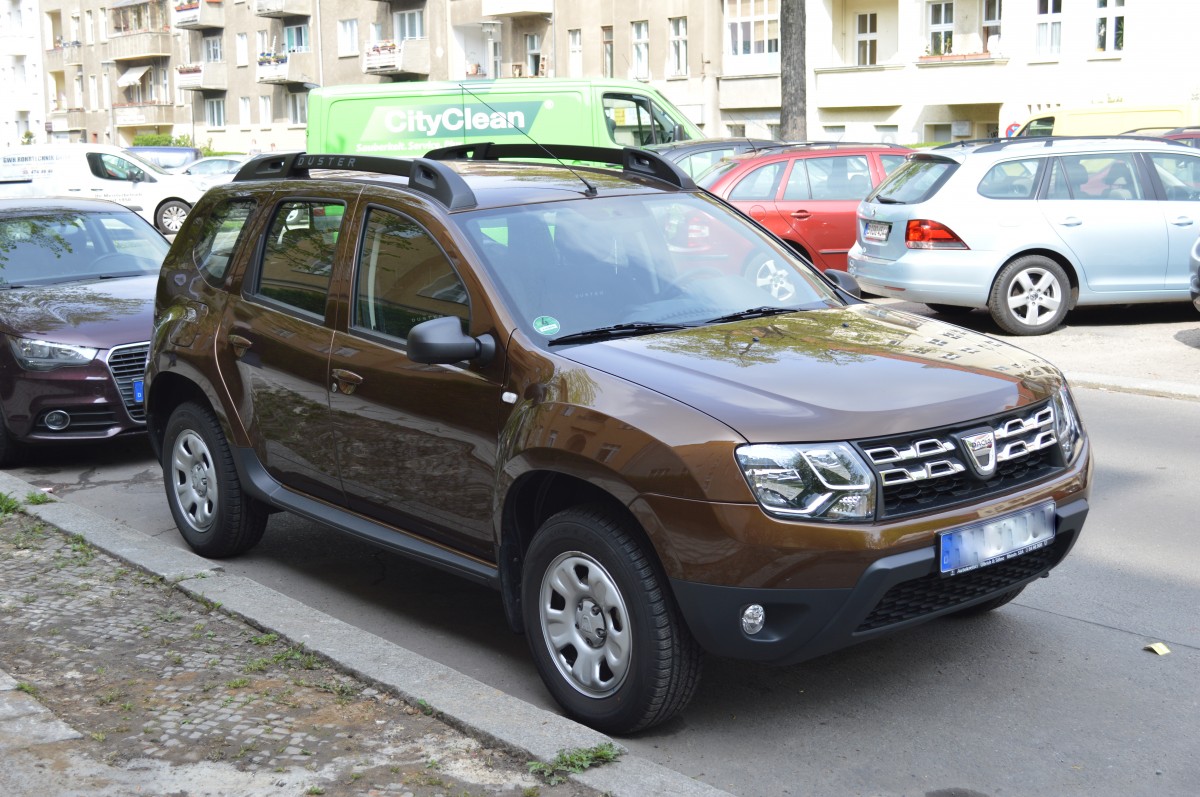 Ein DACIA DUSTER Kompakt-SUV als Firmenfahrzeug (Einsatzfahrzeug) der Firma RUWE aus Berlin, 05.04.13 Berlin-Pankow.