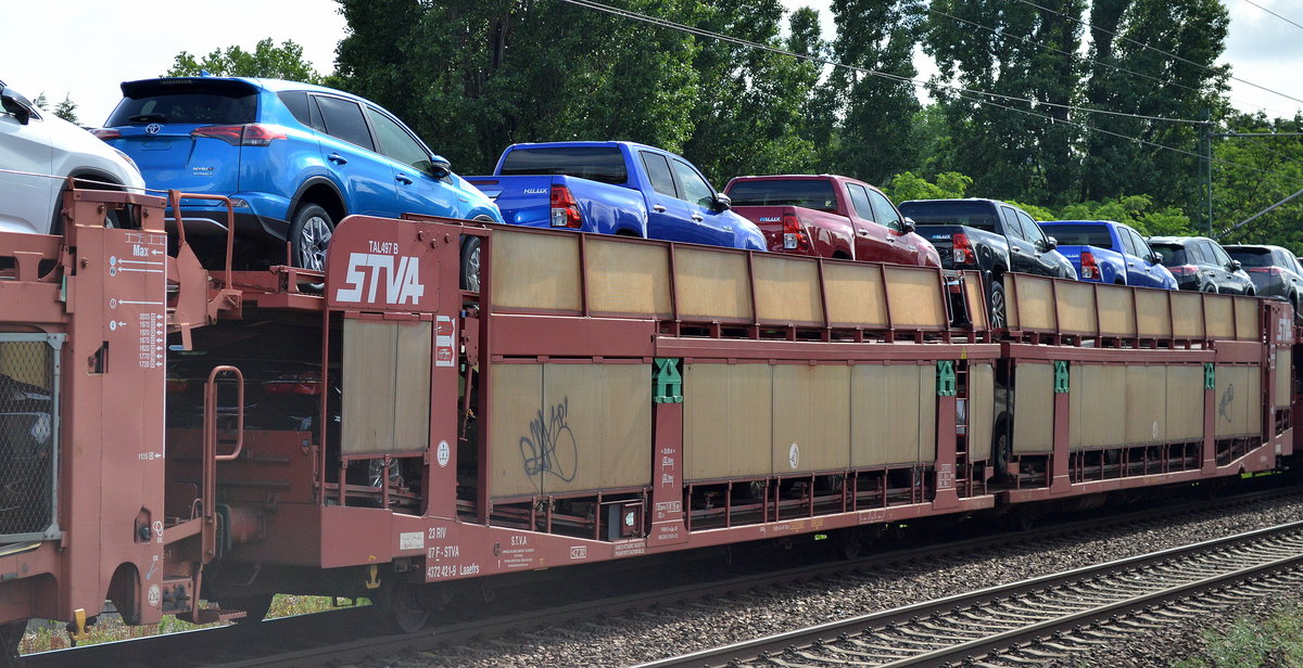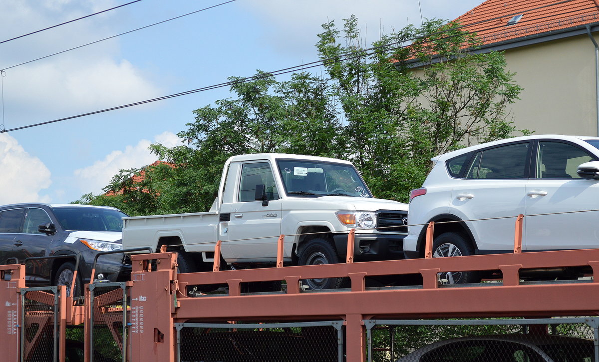 Fabrikneuer TOYOTA SUV beim Bahn-Transport am 22.03.17 Bf. Flughafen Berlin-Schönefeld.