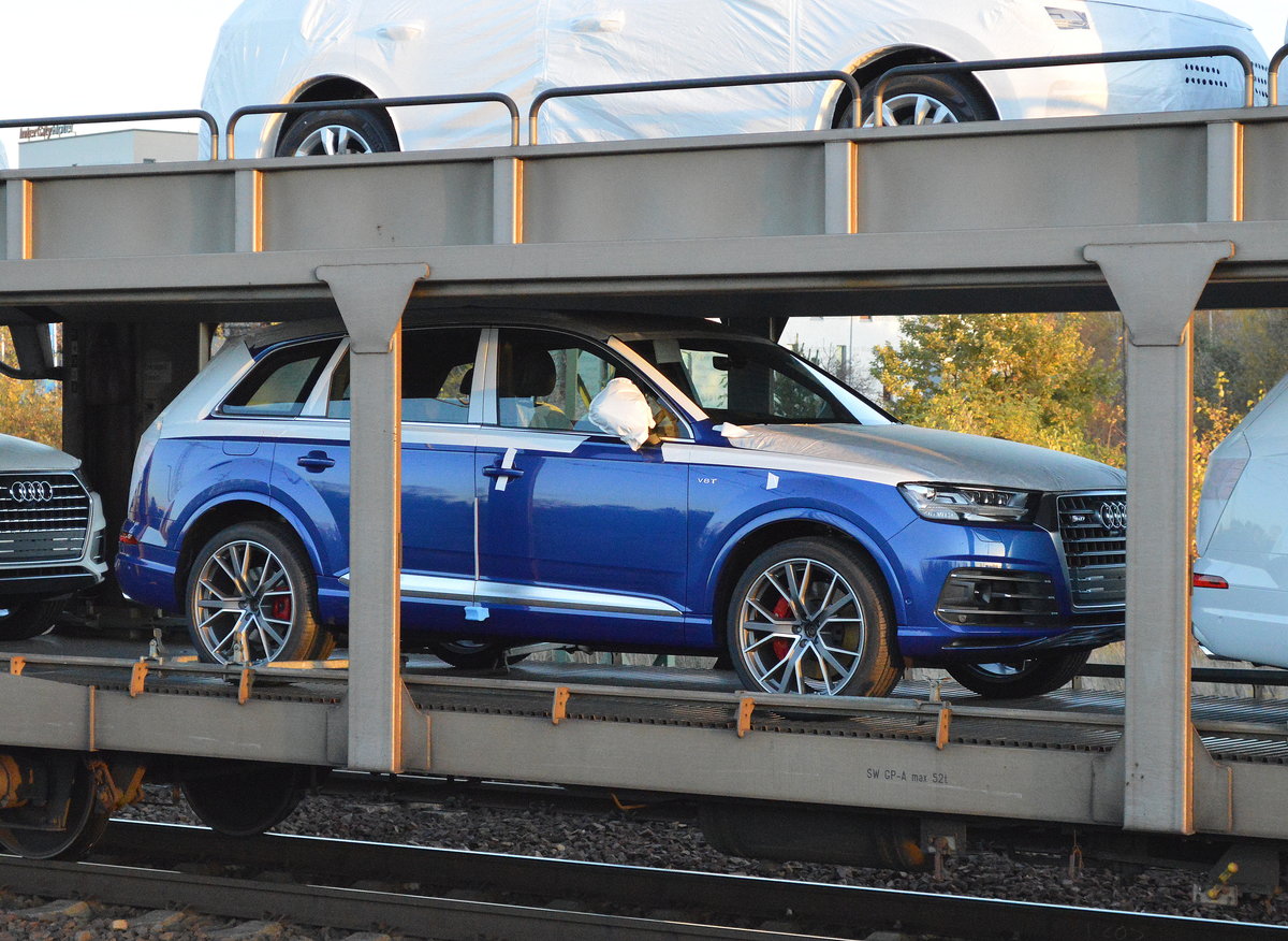 Diverse PKW + SUV Modelle von AUDI bei der Auslieferung per bahn Richtung Polen am 06.11.17 Bf. Flughafen Berlin-Schönefeld.