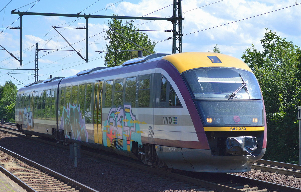 Die DB stellt auf der Inno Trans die neue Variante des DESIRO der Br 642 vor, es ist ein mit Hybridtechnik umgerüsteter Triebzug mit der Nr. 642 129, 18.09.12