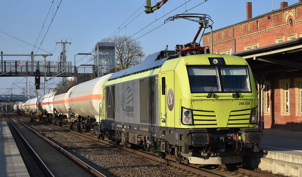 RBB - Regiobahn Bitterfeld Berlin GmbH, Bitterfeld-Wolfen [D] mit der Vectron Dual Lok "248 033" [NVR-Nummer: 90 80 2248 033-3 D-RBB] und einem Coilzug am 24.02.26 Höhe Bahnübergang Rodleben.